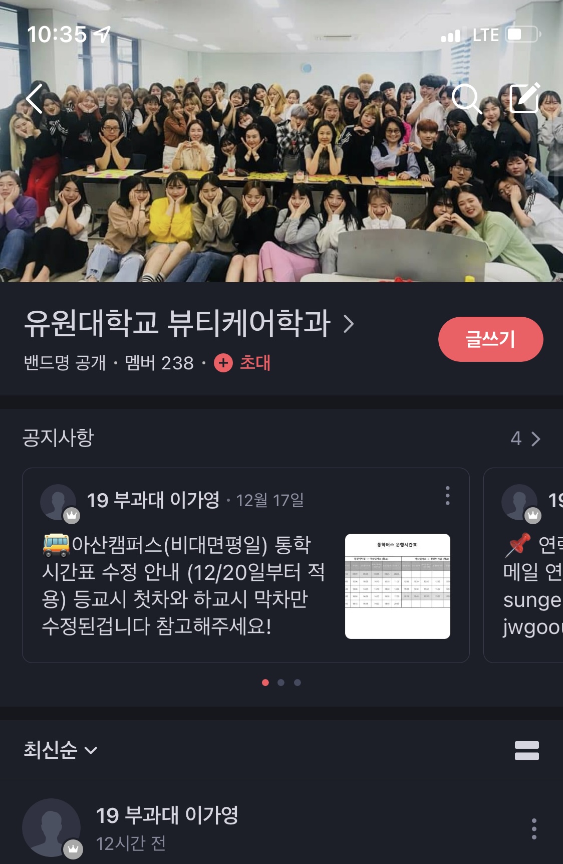 학과 대표나 조교 혹은 교수님을 통해