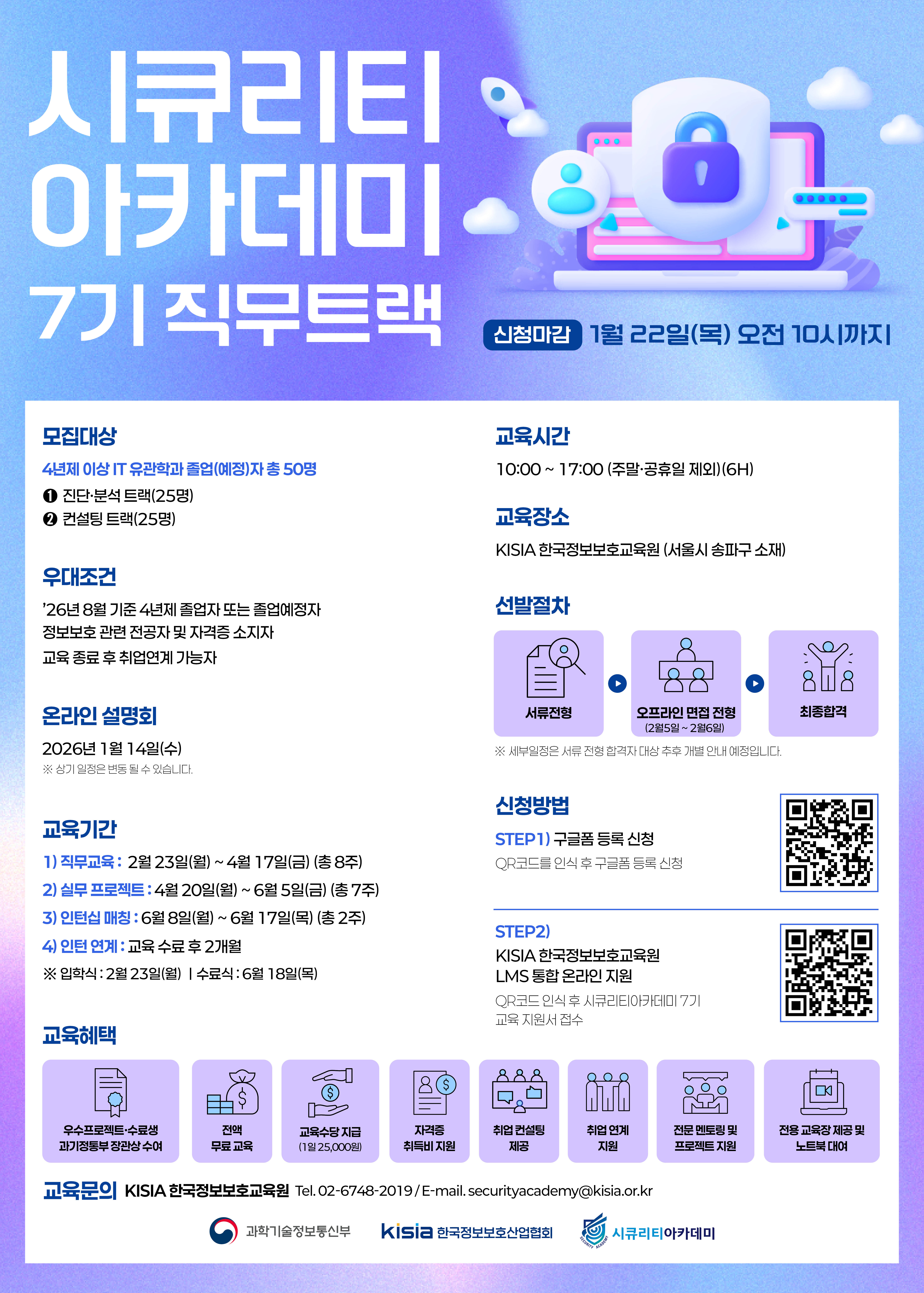- 직무트랙 : 02-6748-2019 / securityacademy@kisia.or.kr