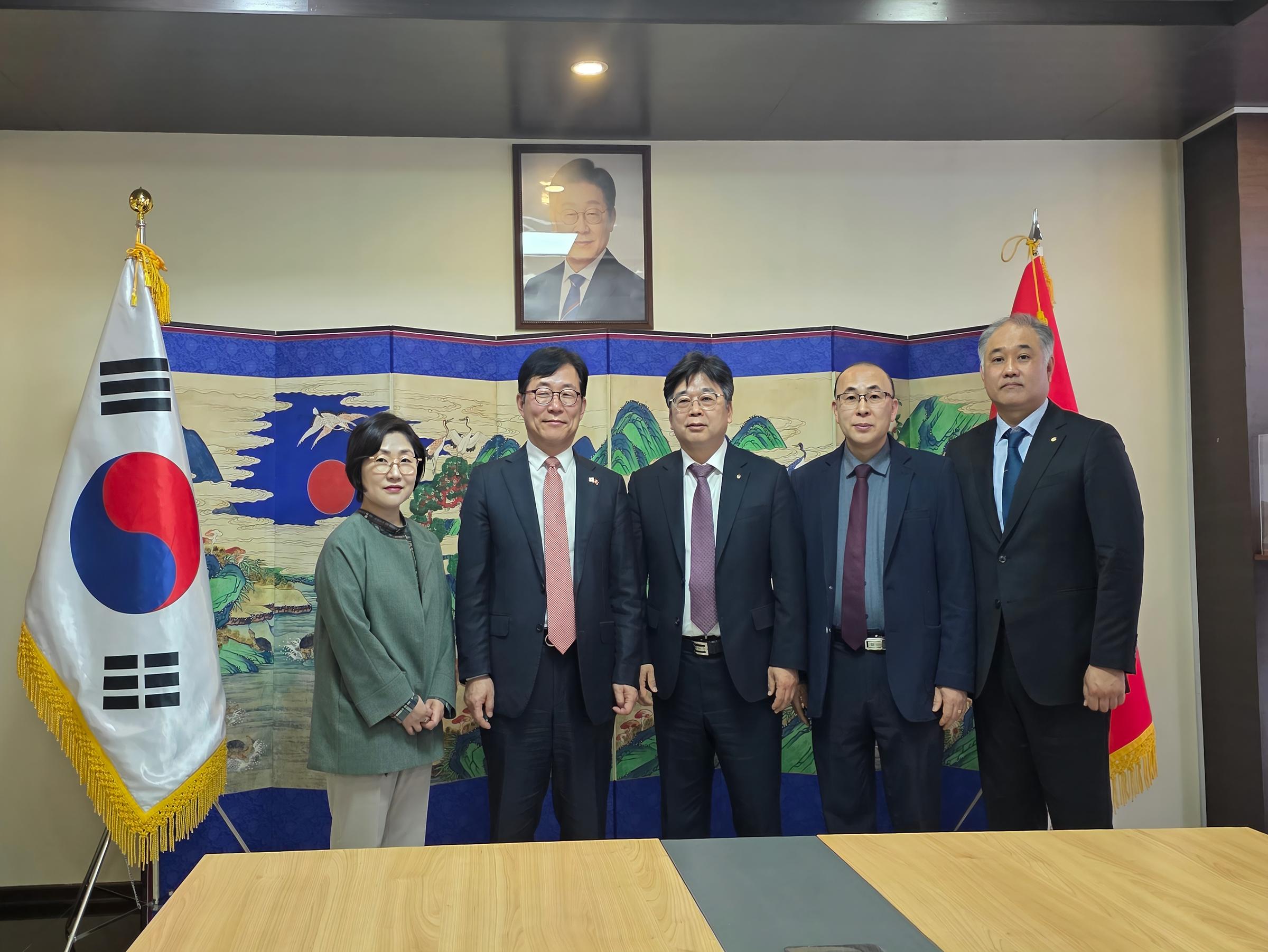 On the 7th, U1 University officials visited the Embassy of the Republic of Korea in Kyrgyzstan to hold a meeting with embassy staff. The discussions focused on revitalizing educational exchanges between the two nations and streamlining visa issuance and entry procedures for international students. During the meeting, the university introduced its specialized recruitment strategy for international students based on the Chungbuk RISE (Regional Innovation System & Education) project, outlining its vision for strengthening international competitiveness through regional win-win models.